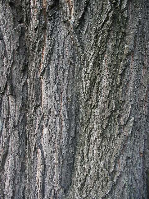 Srebrzystopopielata kora dębu czerwonego długo pozostaje gładka (przypomina korę buka - po lewej). Dopiero u starych drzew staje się ciemniejsza, płytko spękana i chropowata (po prawej). |